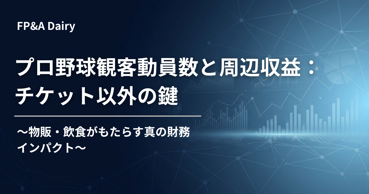 毎年シーズン前になると、各球団のFP&A担当者は「で、結局観客動員数と収益ってどの程度相関するの?」という質問に直面しますよね。実は私も現役時代、球場運営会社とのミーティングで散々議論した記憶があります。単純にチケット売上だけでなく、物販や飲食といった周辺収益(Ancillary Revenue)の財務インパクトが想像以上に大きい。これを正確に把握している企画担当者は意外と少ないんです。