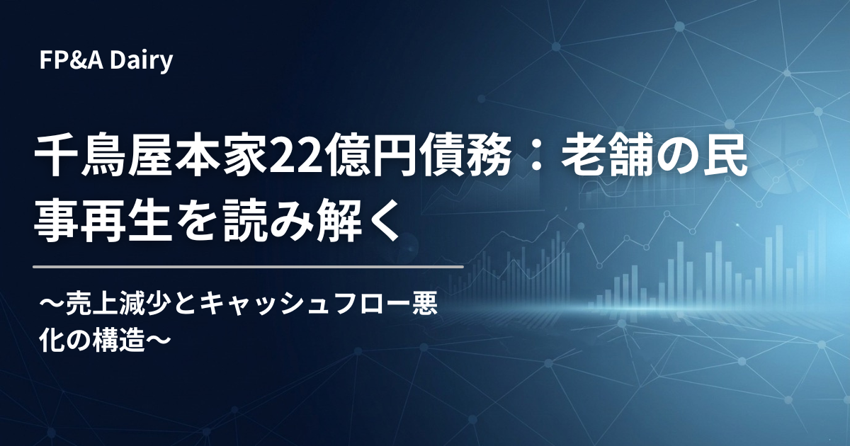 おはようございます。今日は少し重たいニュースから始めさせてください。福岡県の老舗菓子メーカー「千鳥屋本家」グループが2月27日、福岡地裁に民事再生法の適用を申請しました。負債総額は4社合計で約22億6800万円です。千鳥饅頭でお馴染みの会社ですが、約400年の歴史を持つ老舗でもこうした事態に陥るのか、と正直驚いています。で、結局これって何が原因だったんでしょうか。