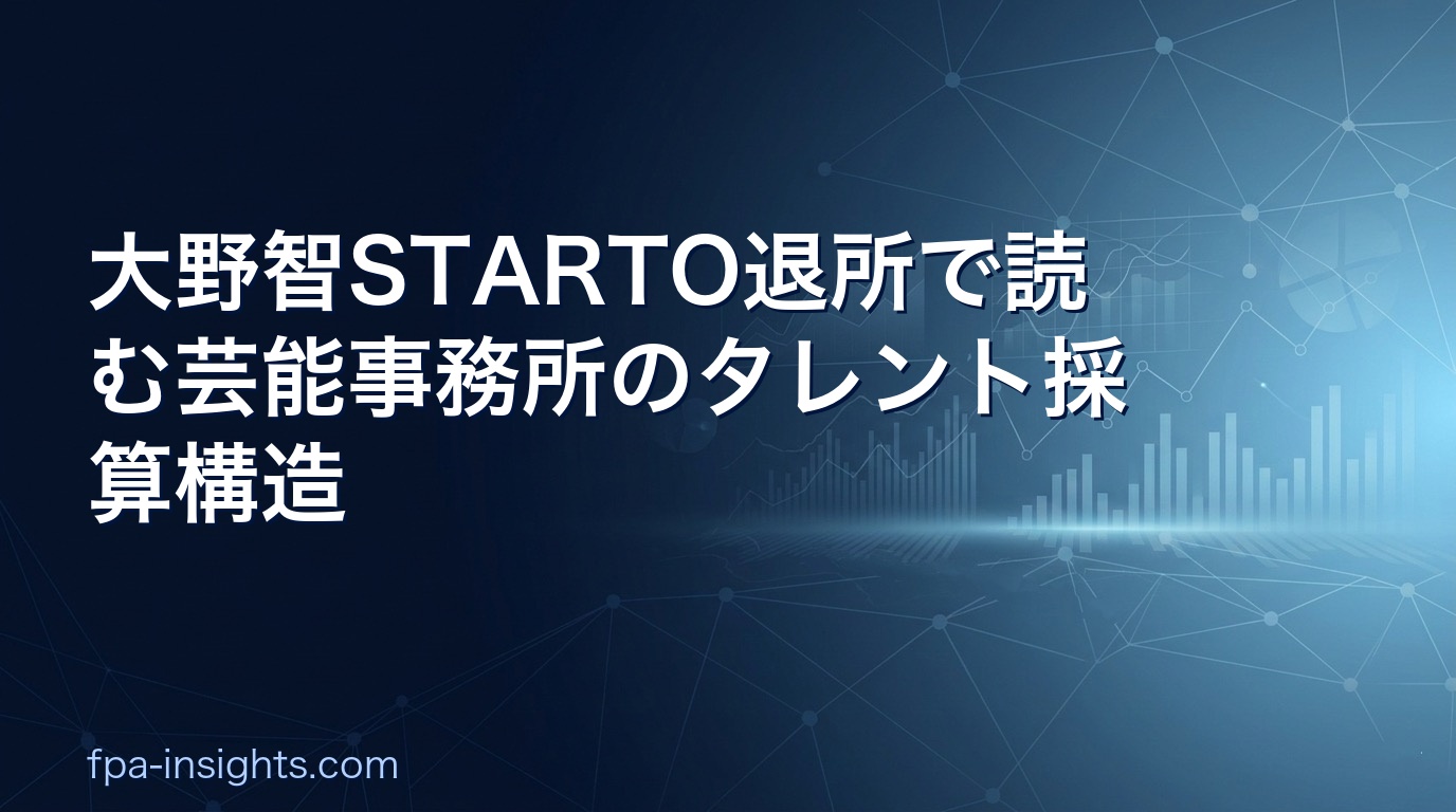 本稿の問い:芸能事務所のタレント収益モデルはどのような採算構造になっているのか?トップタレント退所という「人的資本の流出」はFP&A的にどう評価すべきか?一見すると芸能界の話ですが、実は「高依存キーパーソンのリテンション管理」という普遍的な経営課題に通じています。