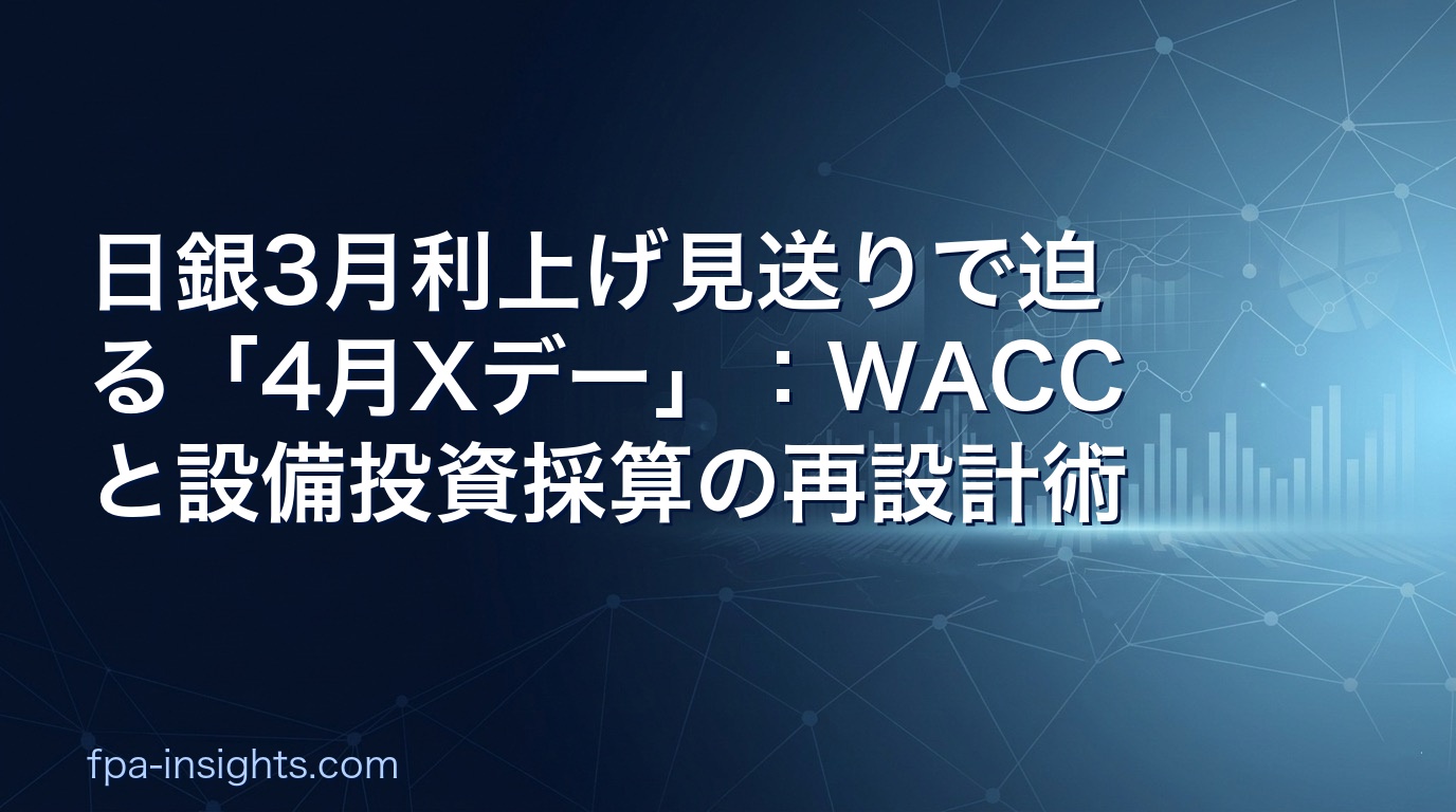 FP&Aの視点でこのニュースが突きつける問いは二つだ。第一に、今後数ヶ月以内に想定される追加利上げ(0.75%→1.0%)は、自社のWACCと設備投資のNPV・IRRにどれだけの変化をもたらすのか。第二に、「利上げ前の猶予」というこの窓を、財務面でどう活用すべきか。「利上げが来てから考える」では遅く、今この瞬間に試算と対策を打つことが経営企画に求められている。