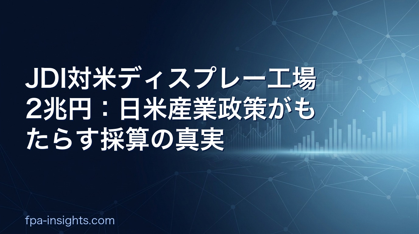 問いへの答え──「2兆円工場は採算が取れるか」。楽観シナリオでも投資回収に28年超を要し、基本シナリオでは赤字だ。JDIの株価3倍は「政策期待」の先取りであり、採算の裏付けには政府補助金の確定規模と調達保証が不可欠だ。FP&A担当者はこの興奮に冷水を浴びせる役割を担っている。