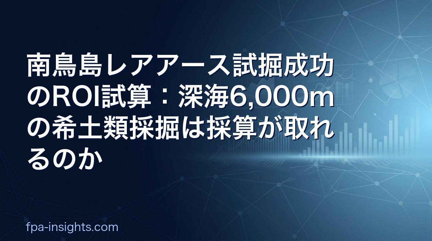 保険としての価値」だ。中国が2010年のように輸出規制を発動した場合、日本の製造業・EV産業が被る損失(J)は数千億〜1兆円超/年と試算される。年間891億円の採掘赤字を単純な事業コストと見るのではなく、「1兆円規模の供給遮断リスクを回避するための保険料」と位置づけると、この国家投資の論理が見えてくる。